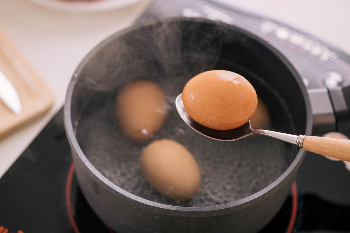 - Не нужно бросать яйца в кипящую воду. Положи их в холодную воду так, чтобы над поверхностью яиц оставалось примерно на палец воды. Затем поставь на огонь.