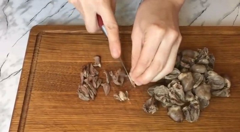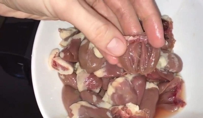 - Для начала нужно подготовить к варке куриные сердечка. Для этого снимаем с них пленку, обрезаем все лишнее, разрезаем и промываем внутри. Варим вместе с лавровым листом, черным и душистым перцем горошком на протяжении 30 минут.