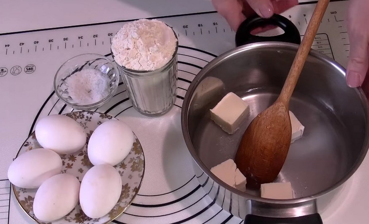 Один из самых лучших способов приготовления мы нашли на канале «Выпечка и кулинария» от Галины Верховской. По ее способу заварное тесто получится у любого, и не нужны дорогущие кухонные машины.