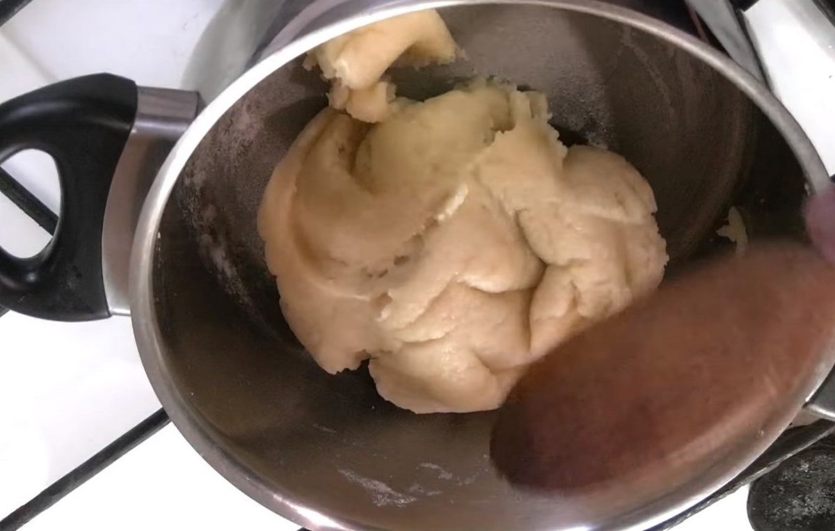 - Ты поймешь, что эта часть теста готова, когда оно станет однородным и на дне кастрюли появится белый налет.